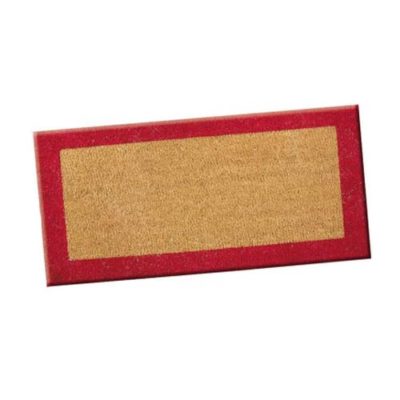 Ce paillasson est disponible avec une bordure de couleurs rouge, marron ou vert.